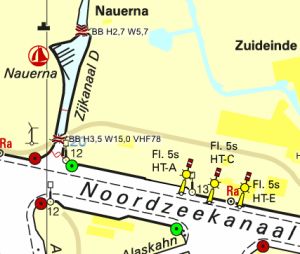 Er zijn ondieptes geconstateerd bij de Oranjesluizen in Amsterdam. Recreatievaart kan het beste ook de vaargeul aanhouden. Direct aan stuurboord bij de visfuiken kan gewacht worden op sluisbediening.