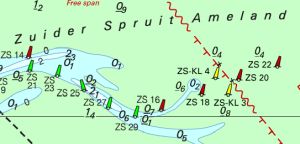 De vaargeul Zuiderspruit bij Ameland is verschoven en de bijbehorende boeien zijn verplaatst.