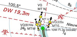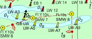 In de Duitse Bocht is de aanloop van de Eider veranderd. De gewijzigde betonning staat nu op de kaart.
