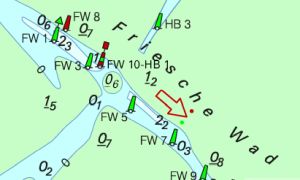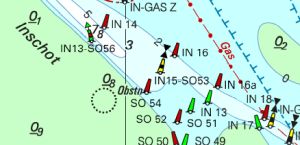 In de Duitse Bocht is extra betonning uitgelegd bij het Nordland-Fahrwasser, richting het eiland Juist.
