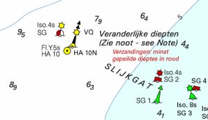 Op een aantal plaatsen zijn hinderlijke ondieptes waargenomen en deze staan nu op de kaart.