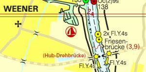 De nautische informatie van de Friesenbrücke is ook aangebracht op kaart 1812.08.