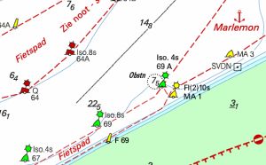 In België zijn een aantal hoogspanningskabels over de vaarwegen bij Gent en Antwerpen opnieuw ingemeten. De nieuwe waarde is vermeld op de kaart. In het Ketelmeer zijn tussen het IJsseloog en de Ketelplaat zandwinningswerkzaamheden. Het is nu gemarkeerd als verboden gebied. Vorige week is de betonning van de Zuiderspruit ten noorden van Vlieland aangepast. Deze week zijn de lichtkarakters van de lichtboeien ook veranderd.